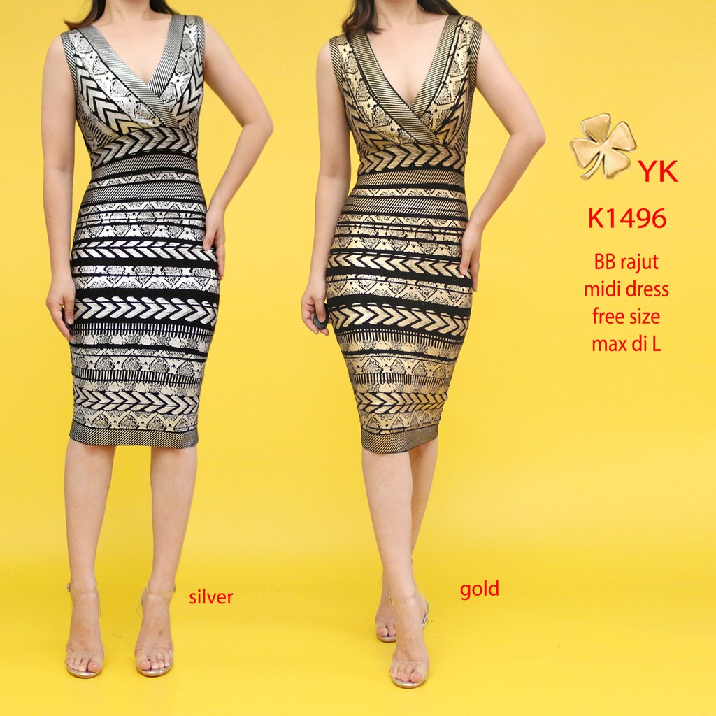 Ykdress 1496 Bb Bbdress Midi Dress Bebe Rajut Bodycon V Neck Buntung Dress Gold Import Party Pesta Shopee Indonesia